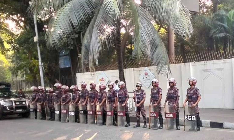 ডেস্ক রিপোর্ট : সার্বিক আইন-শৃঙ্খলা রক্ষা ও নিরাপত্তা নিশ্চিতে রাজধানী ঢাকাসহ তিন জেলায় ১৪ প্লাটুন বিজিবি মোতায়েন করা হয়েছে। এর মধ্যে রাজধানীতে মোতায়েন করা হয়েছে ১২ প্লাটুন বিজিবি।
