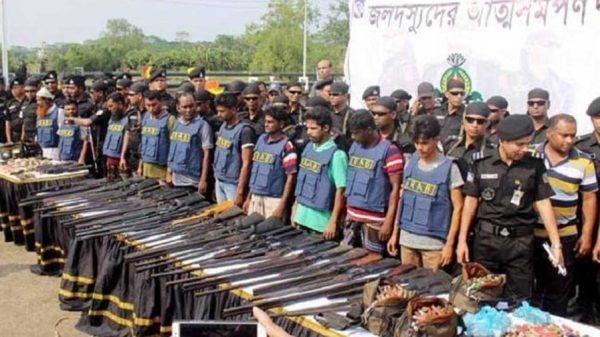 বিশেষ প্রতিনিধি : সুন্দরবনের উপকূলের যে সুন্দরবন ২০১৮ সালের ১ নভেম্বর দস্যুমুক্ত ঘোষনা করা হয়েছিলো সেই বনে গত বছর থেকে শুরু হয় অশান্তি। এবছর জানুয়ারি থেকে ৬ নভেম্বর পর্যন্ত ১০ মাসে সুন্দরবনে বিভিন্ন দস্যুবাহিনীর বিরুদ্ধে অভিযান পরিচালনা করে মোট ২৬টি দেশীয় আগ্নেয়াস্ত্র, ৬৪টি দেশীয় অস্ত্র, অস্ত্র তৈরির বিপুল সরঞ্জামাদি, ৩৭৬ রাউন্ড কার্তুজ এবং জিম্মি থাকা ৬ জন নারীসহ ৪৮ জন জেলেকে উদ্ধার করা হয়েছে। এসব অভিযানে মোট ৪৩ দস্যুকে আটক করা হয়েছে।সুন্দরবনে গত বছরের শেষের দিকে করিম শরিফ বাহিনীর আবির্ভাবে রীতিমত আতঙ্কিত হয়ে পড়ে জেলেরা। এর পর ধীরে ধীরে মাথাচাড়া দিয়ে ওঠে আসাবুর বাহিনী, আনারুল বাহিনী, ছোট সুমন বাহিনী, রাঙা বাহিনী, দুলাভাই বাহিনী, জাহাঙ্গীর বাহিনীসহ একাধিক ছোট ছোট দস্যুগ্রুপ। বিভিন্ন সংবাদ মাধ্যমে উঠে আসে বর্তমানে ২০টি দস্যুবাহিনী সুন্দরবনের বিভিন্ন এলাকায় তাদের অপতৎপরতা চালিয়ে যাচ্ছে। সাধারন জেলেদের ধরে নিয়ে নির্যাতন এবং মুক্তিপণ আদায় করছে দস্যুরা।