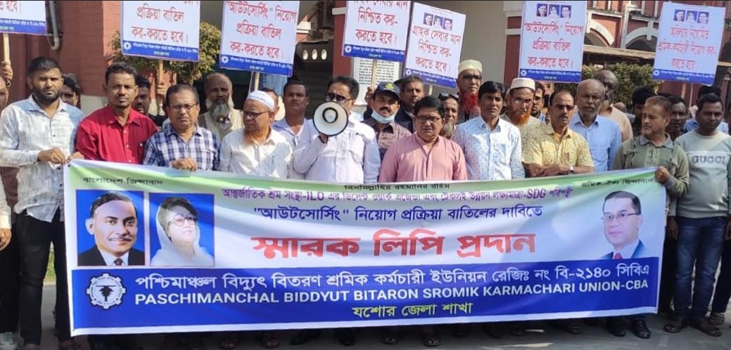 কর্মসূচিতে নেতৃত্ব দেন জাতীয়তাবাদী শ্রমিক দল যশোর জেলা শাখার ভারপ্রাপ্ত সভাপতি মো. আবু জাফর। তিনি বলেন, বিদ্যুৎ বিভাগের আউটসোর্সিং পদ্ধতিতে নিয়োগ শ্রমিকদের স্থায়ী নিয়োগ, ন্যায্য অধিকার ও নিরাপত্তা ক্ষুণ্ন করে। তাই এ প্রক্রিয়া বাতিল করে যোগ্যতার ভিত্তিতে স্বচ্ছ নিয়োগ নিশ্চিত করার দাবিতে কেন্দ্রীয়ভাবে এই কর্মসূচি পালন করা হচ্ছে।