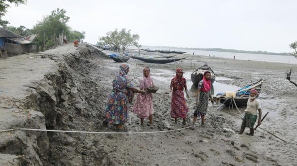 বিশেষ প্রতিনিধি : ক্ষতিগ্রস্ত সড়ক/বাঁধ মেরামত করছেন বাংলাদেশের উপকূলীয় বাসিন্দারা। সমুদ্রপৃষ্ঠের উচ্চতা বৃদ্ধি উপকূলীয় অঞ্চলের বাসিন্দাদের মানসিক স্বাস্থ্যের ওপর নেতিবাচক প্রভাব ফেলে। সম্প্রতি এক গবেষণায় উঠে এসেছে, সমুদ্রপৃষ্ঠের উচ্চতা বৃদ্ধি বাংলাদেশের উপকূলীয় অঞ্চলের মানুষের মানসিক স্বাস্থ্যকে নেতিবাচকভাবে প্রভাবিত করছে। এই কারণে বিশেষ করে, এসব অঞ্চলের মানুষের মধ্যে উদ্বেগ, হতাশা, মানসিক চাপ ও দুশ্চিন্তার মতো বিষয়গুলো বেড়ে গেছে।