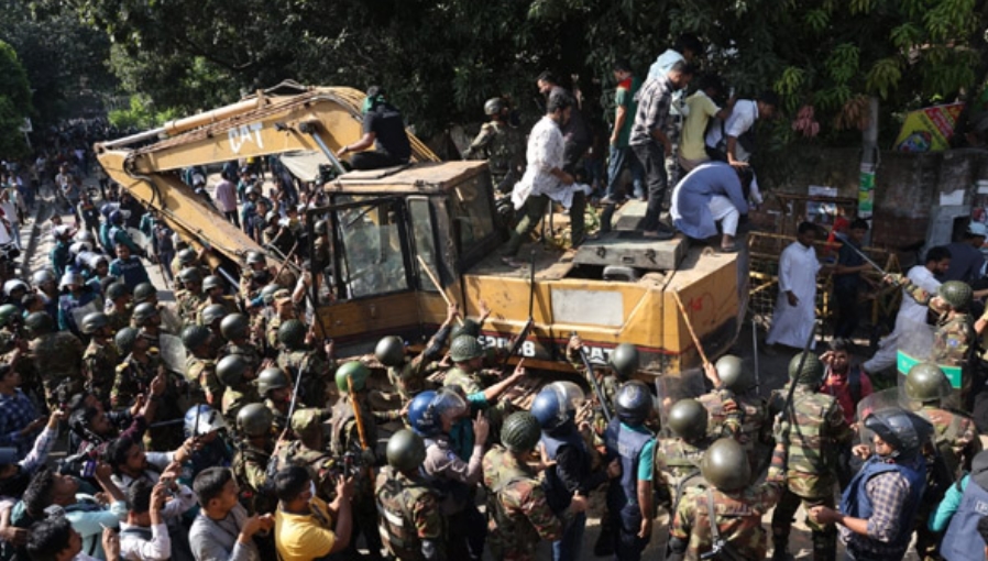 ডেস্ক রিপোর্ট : ধানমন্ডি ৩২ নম্বরে এক্সকাভেটর নিয়ে প্রবেশের চেষ্টাকালে বিক্ষোভকারীদের লাঠিপেটা করে সরিয়ে দিয়েছে পুলিশ ও সেনাবাহিনী। এ সময় পুলিশ ও সেনাবাহিনীকে লক্ষ্য করে ইট-পাটকেল নিক্ষেপ করে বিক্ষোভকারীরা।