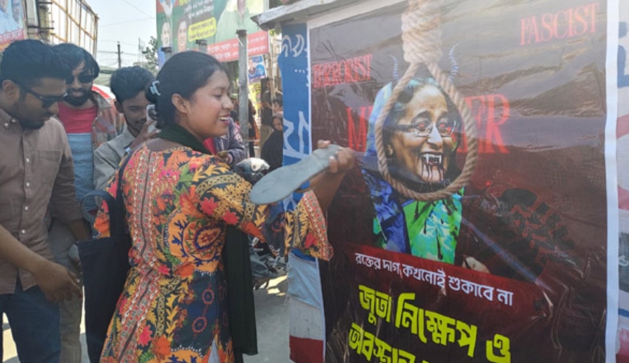 জুলাইয়ের অভ্যুত্থানের পর ক্ষমতাচ্যুত সাবেক প্রধানমন্ত্রী শেখ হাসিনা, তৎকালীন স্বরাষ্ট্রমন্ত্রী আসাদুজ্জামান খান কামাল এবং সাবেক আইজিপি চৌধুরী আব্দুল্লাহ আল মামুনের বিরুদ্ধে মানবতাবিরোধী অপরাধের মামলার রায় ঘোষণাকে ঘিরে সোমবার (১৭ নভেম্বর) দুপুর ১২টার দিকে খুলনা মহানগরীর শিববাড়ি মোড়ে ছাত্রজনতার একদল সদস্য জড়ো হন। তারা রায়ে সর্বোচ্চ শাস্তির দাবি জানিয়ে বিভিন্ন শ্লোগান দেন এবং শেখ হাসিনার প্রতিকৃতিতে জুতা নিক্ষেপ করেন। একই সাথে তারা শেখ হাসিনার ছবি পদদলিত করেন।