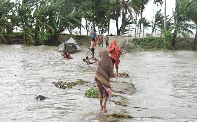 বর্ষায় পূর্ণিমার প্রভাবে বাংলাদেশের সমগ্র উপকূল অঞ্চলে জোয়ারের পানি অস্বাভাবিক বেড়ে যায়। উপকূলের সব নদীর পানি বিপদসীমার উপর দিয়ে প্রবাহিত হচ্ছে। উপকূলের সমুদ্র রেখার নিকটবর্তী বহু গ্রাম জোয়ারের পানিতে তলিয়ে যায়। ফলে প্লাবিত এলাকার বাসিন্দাদের জীবন বিপর্যস্ত হয়ে পড়ে। বহু পরিবার বাড়ি ছেড়ে রাস্তায় আশ্রয় নিতে বাধ্য হন।