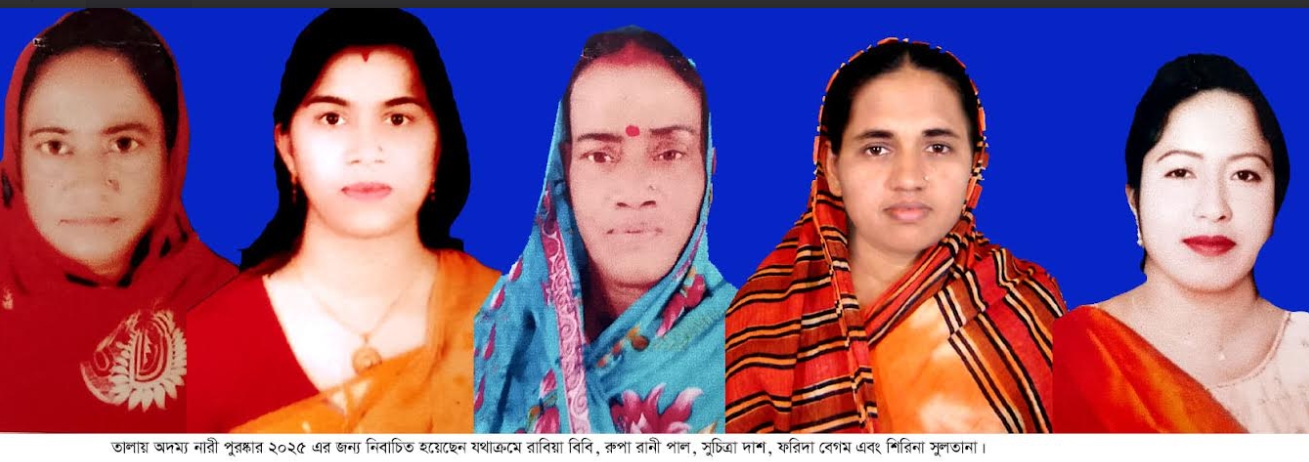 তালা প্রতিনিধি : সমাজ ও পরিবারের নানা বাঁধা কাটিয়ে জীবন সংগ্রামে সাফল্য অর্জন করেছেন সাতক্ষীরার তালা উপজেলার ৫ নারী। নানা বাঁধা বিপত্তিকে পায়ে মাড়িয়ে তৃণমূল থেকে উঠে আসা এসব নারীদের খুঁজে বের করে অদম্য নারী পুরষ্কার-২০২৫ সালের জন্য ৫টি ক্যাটাগরীতে নির্বাচিত করেছে উপজেলা প্রশাসন। এই ৫ নারীর প্রত্যেকের জীবনে রয়েছে অসীম আত্মশক্তি ও সংগ্রামের আলাদা আলাদা জীবন কাহিনী। তাদের সেই সংগ্রামী জীবনের কিছু তথ্য তুলে ধরা হলো:
