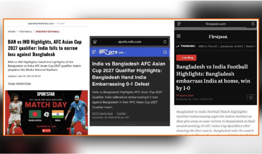দক্ষিণ এশিয়ান ডার্বির পর ভারতের বেশকিছু গণমাধ্যম বিশ্লেষণ করে দেখা গেছে, দ্য হিন্দু, এনডিটিভি, ফার্স্ট পোস্টসহ বেশিরভাগ মূলধারার সংবাদমাধ্যমগুলোতে ভারতের হারকে লজ্জার হিসেবে চিত্রায়িত করা হয়েছে।