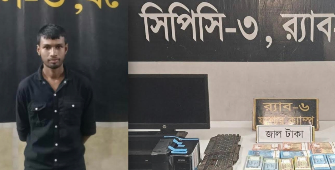 যশোর প্রতিনিধি : যশোরের মনিহার এলাকা থেকে চার লাখ ২৯ হাজার ৬০০ টাকার জাল নোট এবং জাল টাকা তৈরির সরঞ্জাম উদ্ধার করেছে র্যাব-৬, সিপিসি-৩। এ ঘটনায় ইব্রাহিম গাজি (১৯) নামে এক যুবককে গ্রেফতার করা হয়েছে। শুক্রবার রাত সাড়ে বারোটার দিকে র্যাব যশোর ক্যাম্পের পাঠানো এক প্রেস বিজ্ঞপ্তিতে এ তথ্য জানানো হয়।