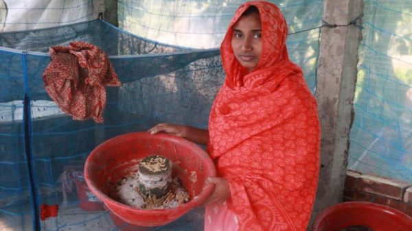তালা প্রতিনিধি : সাতক্ষীরা জেলার তালা উপজেলার সদর ইউনিয়নের কিসমতঘোনা গ্রামের রাবেয়া খাতুন (৩২) এখন এলাকার সফল মৎস্যখাদ্য উৎপাদক হিসেবে পরিচিত। বাজারে কেনা মাছের খাদ্যের বিকল্প হিসেবে কালো সৈনিক পোকার (ব্ল্যাক সোলজার ফ্লাই) পিউপা ও লার্ভা উৎপাদন করে তিনি এলাকায় সাড়া ফেলেছেন। তাঁর খামার এখন অনেকের শেখার জায়গা, অনেকে নিয়মিত এসে দেখছেন এবং অনুপ্রাণিত হচ্ছেন।