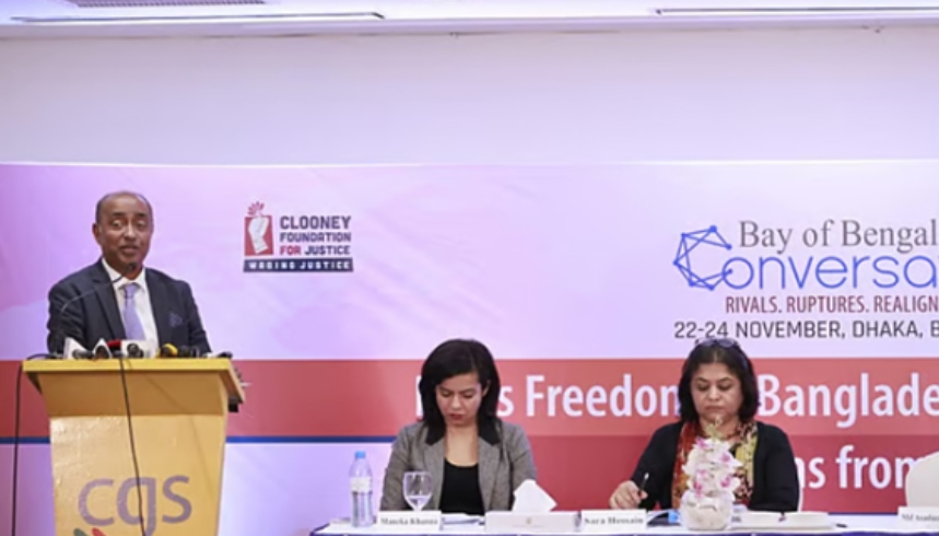 আজ সোমবার (২৪ নভেম্বর) রাজধানীর একটি হোটেলে অ্যাটর্নি জেনারেল আসাদুজ্জামান সেন্টার ফর গভর্ন্যান্স স্টাডিজ (সিজিএস) আয়োজিত তিন দিনব্যাপী ‘বে অব বেঙ্গল কনভারসেশন ২০২৫’ সম্মেলনের তৃতীয় দিনের এক পর্বে এ কথা বলেন। তিনি ‘ডিজিটাল নিরাপত্তা আইন সম্পর্কিত প্রতিবেদন প্রকাশ: ভবিষ্যৎ বাংলাদেশের গণমাধ্যমের স্বাধীনতার জন্য গুরুত্বপূর্ণ শিক্ষা’ পর্বে বক্তব্য দেন।