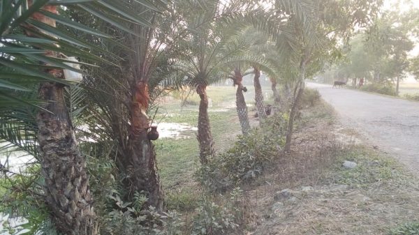 দশমিনা(পটুয়াখালী) প্রতিনিধি : পটুয়াখালীর দশমিনা উপজেলার ৭টি ইউনিয়নের গ্রামাঞ্চল থেকে শীত মৌসুমের মুখরোচক খেজুরের রসসহ খেজুর গাছ কালের বিবর্তনে বিলুপ্ত হতে চলছে। শীতকালে গ্রামের সাধারন মানুষের জীবন ও জীবিকার এবং বাড়তি আয়ের অন্যতম উপাদান হিসাবে খেজুরের রস ছিল। শীত মৌসুমের শুরুতেই খেজুর গাছ কেটে রস সংগ্রহে ব্যস্ত হয়ে পড়তো। ঘন কুয়াশার চাদরে ঢাকা গ্রামের মেঠো পথ দিয়ে গাছিরা এক গাছ থেকে অন্য গাছের রস সংগ্রহ করতো। সারি সারি রসের হাড়ি দেখে সাধারন মানুষ আনন্দে আত্নহারা হয়ে যেত। কালের বিবর্তনে সেই দৃশ্য এখন আর আগের মতো চোখে পড়ছে না।