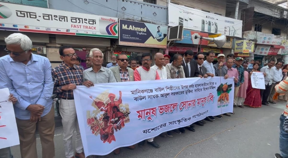 যশোর প্রতিনিধি : বাউল সম্রাট আবুল সরকারের আটকের প্রতিবাদ ও নিঃশর্ত মুক্তির দাবিতে যশোরে মানববন্ধন এবং মিছিল হয়েছে। জেলার সাংস্কৃতিক সংগঠন গুলোর উদ্যোগে আজ মঙ্গলবার দুপুরে শহরের গাড়িখানা রোডে এ মানববন্ধন অনুষ্ঠিত হয়।
