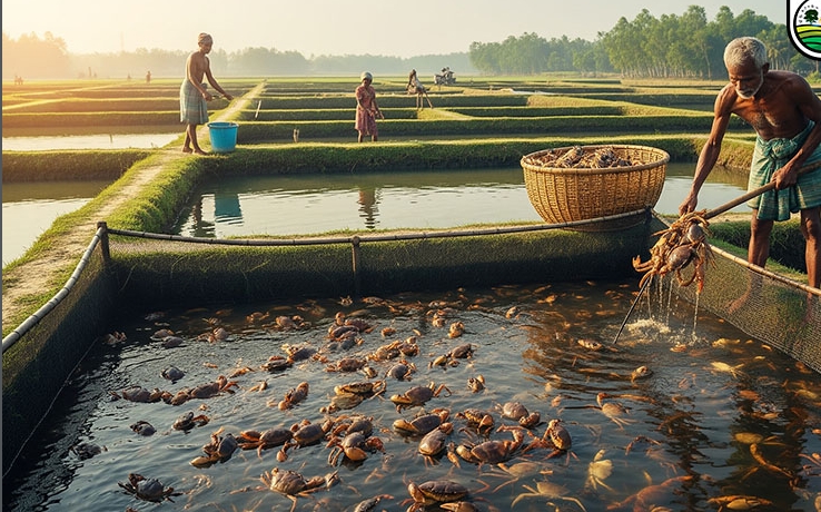 কাঁকড়া চাষে পুকুরের পানির উপরিস্তর ব্যবহৃত হয়। যাতে অব্যবহৃত থাকে পানির নিচের স্তর। পুকুরের পানির সর্বোত্তম ব্যবহার নিশ্চিত করার জন্য কাঁকড়ার পাশাপাশি সাদা মাছ যেমন- রুই, কাতলা ও তেলাপিয়াসহ নানা মাছ চাষ করে লাভবান হচ্ছেন অনেক চাষি।