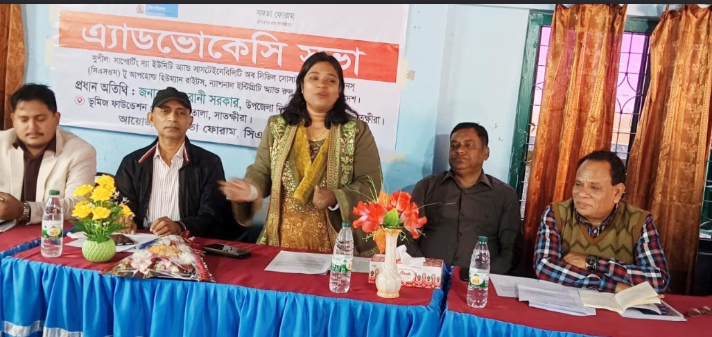 সভাপতিত্ব করেন সমতা ফোরামের সভাপতি মো. আনিসুর রহমান। ভূমিজ ফাউন্ডেশন ও অ্যাকশনএইডের সহযোগিতায় বাস্তবায়িত সুশীল প্রকল্প বিষয়ে বক্তব্য রাখেন ভূমিজ ফাউন্ডেশনের নির্বাহী পরিচালক অচিন্ত্য সাহা। পাওয়ার পয়েন্ট প্রেজেন্টেশন উপস্থাপন করেন সমতা ফোরামের সেক্রেটারি শফিকুল ইসলাম এবং সুশীল প্রকল্পের জেলা সমন্বয়কারী দে অঞ্জন কুমার।