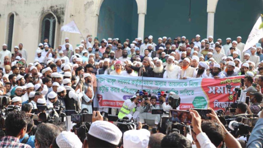 বক্তারা সরকারকে হুঁশিয়ারি দিয়ে বলেন, ধর্মদ্রোহীদের রক্ষা করা মানেই ইসলামবিদ্বেষীদের মদদ দেওয়া। মুসলমানরা তা কখনো মেনে নেবে না। ইনশাআল্লাহ, এই জাতি উপযুক্ত জবাব দিতে জানে।