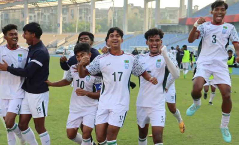 ক্রীড়া প্রতিবেদক : চীনে অনুষ্ঠিত এএফসি অনূর্ধ্ব–১৭ এশিয়ান কাপ ২০২৬ বাছাইপর্বে দারুণ ছন্দ ধরে রাখল বাংলাদেশ। গ্রুপ ‘এ’-তে শুক্রবার বাহরাইনকে ২–১ গোলে হারিয়ে চার ম্যাচে চার জয় তুলে নিল লাল–সবুজের যুবারা।