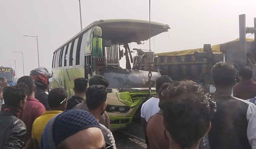 পুলিশ ও স্থানীয় সূত্রে জানা গেছে, ঢাকা থেকে খুলনা উদ্দেশ্যে ছেড়ে আসে ওয়েলকাম পরিবহনের একটি যাত্রীবাহী বাস। পথিমধ্যে ঢাকা-ভাঙ্গা এক্সপ্রেসওয়ের আড়িয়াল খাঁ ব্রিজের ওপর এসে একটি ট্রাকের পেছনে বাসটি সজোরে ধাক্কা দেয়। এতে বাসের সামনে বেশিরভাগ অংশ দুমড়ে মুচড়ে যায় এবং ঘটনাস্থলেই একজন নিহত হয়। খবর পেয়ে শিবচর হাইওয়ে থানার পুলিশ ঘটনাস্থলে গিয়ে উদ্ধার অভিযান শুরু করে। পরে গুরুতর আহত অবস্থায় অন্তত ১৭ জনকে উদ্ধার করে ভাঙ্গা উপজেলা স্বাস্থ্য কমপ্লেক্সে পাঠায় পুলিশ ও স্থানীয়রা। পথে আরও দুইজনের মৃত্যু হয়। এ ঘটনায় এক্সপ্রেসওয়ের ভাঙ্গাগামী লেনে কিছু সময়ের জন্য যানবাহন চলাচল বন্ধ ছিল।