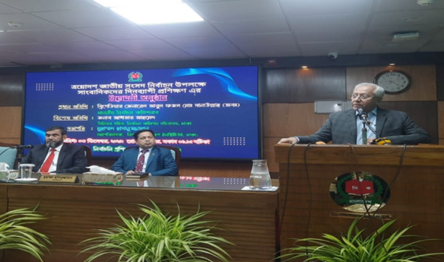 বুধবার (৩ ডিসেম্বর) আগারগাঁওয়ের নির্বাচনী প্রশিক্ষণ ইনস্টিটিউটে (ইটিআই) আসন্ন ত্রয়োদশ জাতীয় সংসদ নির্বাচন উপলক্ষে সাংবাদিকদের প্রশিক্ষণ কর্মসূচিতে বিশেষ অতিথির বক্তব্যে তিনি এ কথা বলেন।