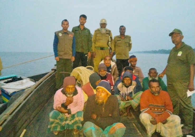 শরণখোলা আঞ্চলিক অফিস : সুন্দরবন পূর্ব বন বিভাগের শরণখোলা রেঞ্জের অভয়ারণ্যের নিষিদ্ধ খালে মাছ ধরার অভিযোগে ১০ জেলেকে আটক করেছে বনরক্ষীরা। এ সময় জব্দ করা হয়েছে জালসহ ৫টি নৌকা। আটক জেলেদের বুধবার সকালে বাগেরহাট আদালতে পাঠানো হয়েছে। বনবিভাগ সূত্রে জানা যায়, গোপন সংবাদের ভিত্তিতে উর্ধতন কর্তৃপক্ষের নির্দেশে জেলেপল্লী দুবলা ফরেষ্ট টহল ফাঁড়ির ভারপ্রাপ্ত কর্মকর্তা ফরেষ্ট রেঞ্জার মিল্টন রায়ের নেতৃত্বে বনরক্ষীরা মঙ্গলবার (২ ডিসেম্বর) সন্ধ্যায় অভিযান চালিয়ে শেলারচর টহল ফাঁড়ির বনাঞ্চলের চানমিয়ার খালে তিনটি জেলে নৌকাসহ ৬ জেলে এবং কালামিয়ার খালে দুটি নৌকাসহ ৪ জেলেকে আটক করেন। আটককৃত জেলেরা নিষেধাজ্ঞা অমান্য করে অভয়ারণ্যের খালে মাছ ধরার প্রস্ততি নিয়েছিলো। আটক জেলেদের মধ্যে ৮ জনের বাড়ী খুলনার কয়রা ও ২ জেলের বাড়ী শরণখোলায় বলে বনরক্ষীরা জানান। সুন্দরবন পূর্ব বন বিভাগ বাগেরহাটের বিভাগীয় বন কর্মকর্তা (ডিএফও) মোঃ রেজাউল করীম চৌধুরী বলেন, সুন্দরবনের অভয়ারণ্যে আটক জেলেদের বিরুদ্ধে বন আইনে মামলা দায়ের করা হয়েছে। বুধবার সকালে মামলার আসামীদের বাগেরহাট আদালতে পাঠানো হয়েছে বলে ডিএফও জানান।