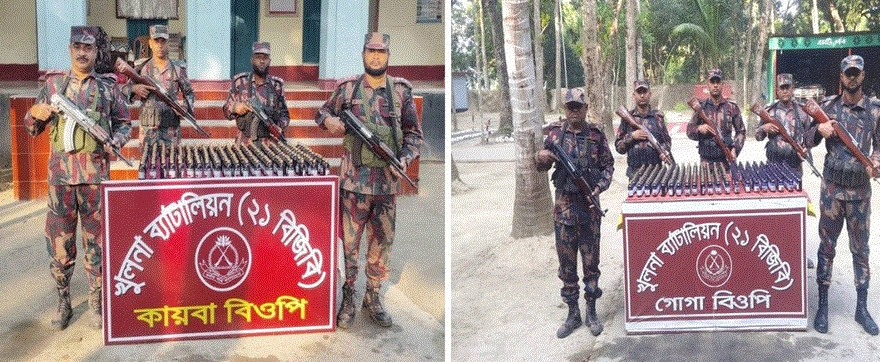 বেনাপোল প্রতিনিধি : বেনাপোলসহ শার্শার সীমান্ত এলাকায় পৃথক অভিযানে ১১৭ বোতল ভারতীয় এস্কাফ সিরাপ ও ৪৮০ বোতল উইনসেরক্স নেশাজতীয় সিরাপ উদ্ধার হয়েছে। বেনাপোলসহ শার্শার কায়বা ও গোগা সীমান্ত এলাকায় অভিযান চালিয়ে পরিত্যাক্ত অবস্থায় নেশাজাতীয় মোট ৫৯৭ বোতল সিরাপ উদ্ধার করে বর্ডারগার্ড বাংলাদেশ (বিজিবি)। তবে এ সময় কোন চোরাচালানী আটক হয়নি।খুলনা ২১ বিজিবি ব্যাটালিয়ন এর অধিনায়ক লে: কর্নেল মোহাম্মাদ খুরশীদ আনোয়ার এক প্রেস ব্রিফিংয়ে জানায় সীমান্তে বিজিবির নিয়মিত টহল অনুযায়ী গোগা ও কায়বা থেকে দুই প্রকার নেশাজাতিয় সিরাপ মোট ৫৯৭ বোতল উদ্ধার করেছে। চোরাচালানিরা বিজিবির উপস্থিতী টের পেয়ে পালিয়ে যেতে সক্ষম হয়। স্থানীয়রা জানায় সম্প্রতি গোগা কায়বা অগ্রভুলোট হরিষচন্দ্রপুর হয়ে প্রতিদিন নেশাজাতীয় মাদক ফেনসিডিল ও সিরাপ আসছে। এসব নেশাজাতিয় দ্রব্য ভারত থেকে চোরাচালানিরা নির্বিঘ্নে আনতে পারে।