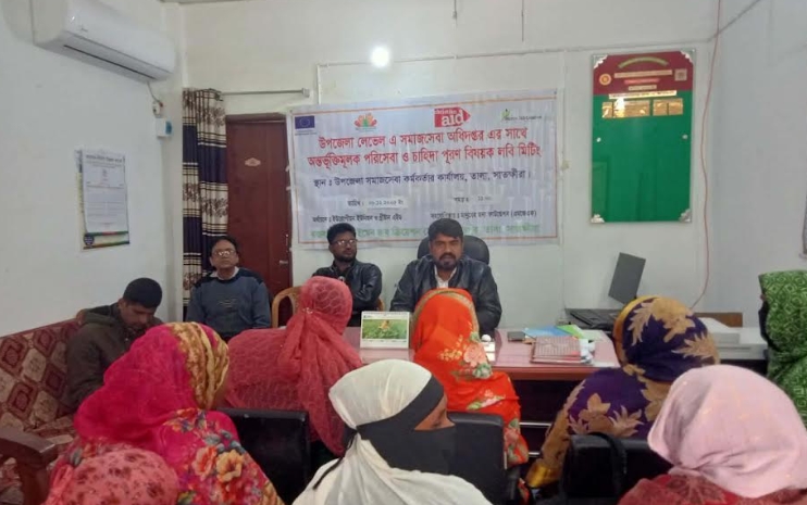 তালা প্রতিনিধি : সোমবার (৮ ডিসেম্বর) সকালে তালা উপজেলা সমাজ সেবা কর্মকর্তার কার্যালয়ে পরিসেবা ভিত্তিক অর্ধবার্ষিক লবি সভা অনুষ্ঠিত হয়। ইউরোপিয়ান ইউনিয়ন ও খ্রীষ্টান এইডের অর্থায়নে এবং মানুষের জন্য ফাউন্ডেশনের সহযোগিতায় ও উইমেন জব ক্রিয়েশন সেন্টারের বাস্তবায়নে চৎড়সড়ঃরহম জরমযঃং ড়ভ ঃযব ঠঁষহবৎধনষব ডড়সবহ প্রকল্পের আওতায় অনুষ্ঠিত সভায় সভাপতিত্ব করেন উপজেলা সমাজসেবা কর্মকর্তা শরিফুল ইসলাম। সভায় মডারেটরের দায়িত্ব পালন করেন প্রকল্প সমন্বয়কারী কাজী বাবর আলী। সহযোগীয় ছিলেন সংশ্লিষ্ট ইউনিয়নের ফিল্ড ভলেন্টিয়ার তানজিলা খাতুন ও প্রশান্ত কুমার ঘোষ। উক্ত লবি সভায় জালালপুর ও মাগুরা ইউনিয়নের ১৫ জন নারীদলের সদস্য এবং সংশ্লিষ্ট কর্মকর্তাগণসহ ৩০ জন অংশগ্রহণ করেন। এ সময় সমাজসেবা কর্মকর্তা শরিফুল ইসলাম বলেন, বাংলাদেশে ১৫৪ টি সামাজিক কার্যক্রমের সংশ্লিষ্ট দফতর থেকে ৫৪ টি সেবা কার্ক্রম সমাজসেবা অধিদপ্তর বাস্তবায়ন করছে। বিশেষ করে দারিদ্র বিমোচন, পল্লী মাতৃকেন্দ্র, প্রতিবন্ধি পুর্নবাসন ক্ষুদ্রঋণ, সমাজিক নিরাপত্তা(বয়ষ্ক, বিধবা, প্রতিবন্ধি, দলিত হরিজন, হিজড়া ভাতা) এতিমখানার জন্য ভাতা, ৬টি জটিল রোগের জন্য চিকিৎসা সহায়তা ও হাসপাতালে ভর্তি অসহয় রোগীর জন্য আর্থিক সহায়তা উত্যাদি। এ সময় তিনি বিভিন্ন ধরনের ভাতা, আবেদন প্রক্রিয়া ও শর্তাবলী, সহজ শর্তে ক্ষুদ্র সংক্রান্ত বিষয়েও আলোচনা করেন।