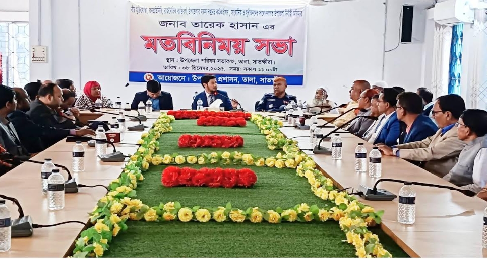 তালা প্রতিনিধি : সাতক্ষীরার তালায় সুধীজনদের সঙ্গে নবাগত উপজেলা নির্বাহী কর্মকর্তা (ইউএনও) তাকে হাসানের মতবিনিময় সভা অনুষ্ঠিত হয়েছে। সোমবার (৮ ডিসেম্বর) বেলা ১১টায় উপজেলা প্রশাসনের আয়োজনে তালা উপজেলা পরিষদের সভাকক্ষে মতবিনিময় করেন, তালা উপজেলার নবাগত নির্বাহী কর্মকর্তা ও উপজেলা পরিষদের প্রশাসক তারেক হাসান। উপজেলা সহকারী কমিশনার (ভূমি) রাহাত খানের সঞ্চালনায় সভায় বক্তব্য রাখেন তালা থানার অফিসার ইনচার্জ (তদন্ত) মো. সাখাওয়াত হোসেন, সাতক্ষীরা জেলা জামায়াতের নায়েবে আমীর ডা. মাহমুদুল হক, তালা উপজেলা বিএনপির সাবেক সভাপতি মৃণাল কান্তি রায়, সাধারণ সম্পাদক অধ্যক্ষ সেখ শফিকুল ইসলাম, তালা উপজেলা জামায়াতের আমীর মাওলানা মফিদুল ইসলাম, মুক্তিযোদ্ধা মোঃ মফিজ উদ্দীন, আলাউদ্দীন জোয়ার্দ্দার, জালালপুর ইউপি চেয়ারম্যান এম মফিজুল হক লিটু, ধানদিয়া ইউপি চেয়ারম্যান জাহাঙ্গীর আলম, ইসলামকাটি ইউপি চেয়ারম্যান গোলাম ফারুক, শহীদ মুক্তিযোদ্ধা মহাবিদ্যালয়ের অধ্যক্ষ এনামুল ইসলাম, উপজেলা দুর্নীতি প্রতিরোধ কমিটির সাধারণ সম্পাদক ও প্রধান শিক্ষক গাজী জাহিদুর রহমান, সাবেক অধ্যক্ষ মোঃ আব্দুর রহমান, তালা প্রেসক্লাবের সভাপতি এস এম হাকিম, সাধারণ সম্পাদক ফারুক হোসেন,পাটকেলঘাটা প্রেসক্লাবের সভাপতি আব্দুল মোমিন, সাংবাদিক নজরুল ইসলাম, বিএম জুলফিকার রায়হান, আকবর হোসেন, উপজেলা নাগরিক কমিটির সাধারণ সম্পাদক শফিকুল ইসলাম, যুবদলের আহবায়ক মির্জা আতিয়ার রহমান, যুগ্ম আহ্বায়ক সাইদুর রহমান সাঈদ, ঠিকাদার মোঃ ময়েজ উদ্দীন, নাসিরুদ্দীন নাহিদ, বৈষম্যবিরোধী ছাত্র আন্দোলনের নেতা আব্দুল কাদের, মীর্জা সাকিব, মামুন হাওলাদার প্রমুখ।