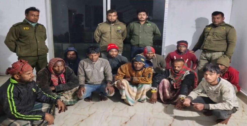 শরণখোলা আঞ্চলিক অফিস : সুন্দরবন পূর্ব বন বিভাগের কটকা অভয়ারণ্য কেন্দ্রের নিষিদ্ধ খালে অবৈধভাবে মাছ ধরার সময় ১১ জেলেকে আটক করেছে বনরক্ষীরা। জব্দ করা হয়েছে দুইটি ট্রলার, তিনটি নৌকাসহ মাছ ধরার জাল। আটক জেলেদের বুধবার সকালে বাগেরহাট আদালতে পাঠানো হয়েছে। বনবিভাগ সূত্রে জানা যায়, সুন্দরবন পূর্ব বন বিভাগের শরণখোলা রেঞ্জের কটকা অভয়ারণ্য কেন্দ্রের ভারপ্রাপ্ত কর্মকর্তা ফরেষ্টার মোঃ মতিউর রহমানের নেতৃত্বে বনরক্ষীরা মঙ্গলবার (৯ ডিসেম্বর) বিকেলে সুন্দরবনের নদীতে নিয়মিত টহলের সময় কটকা বনাঞ্চলের কাবলোতলা খালে কয়েকজন জেলেকে অবৈধভাবে নৌকা ও ট্রলার নিয়ে মাছ ধরতে দেখেন। বনরক্ষীরা এগিয়ে গিয়ে ১১ জন জেলেকে হাতেনাতে আটক করেন। জেলেদের কবল থেকে দুইটি ট্রলার ও তিনটি নৌকাসহ মাছ ধরার জাল জব্দ করেন বনরক্ষীরা। আটক জেলেরা হচ্ছেন, নুরইসলাম (৪৩), নয়ন খন্দকার (৩৯), আঃ রহিম (৪৩), ফয়সাল বালি (১৯), নিয়াজ তালুকদার (৩৭), মনির হাং (৪৫), বেল্লাল তাং (৪৩), রবিউল শেখ (১৯), রহমান খান (৩০), শাওন (২০) ও রাকিব ইসলাম (২৭)। আটক জেলেদের বাড়ী শরণখোলা উপজেলার বগী ও চালিতাবুনিয়া গ্রামে বলে বনরক্ষীরা জানান। সুন্দরবন পূর্ব বন বিভাগের শরণখোলা রেঞ্জ কর্মকর্তা (এসিএফ) রানা দেব বলেন, কটকায় আটক ১১ জেলে অবৈধভাবে মাছ ধরায় নিষিদ্ধ খালে মাছ ধরছিলো। তাদের বিরুদ্ধে বন আইনে একটি মামলা দায়ের করা হয়েছে। মামলার আসামীদের বুধবার সকালে বাগেরহাট আদালতে পাঠানো হয়েছে বলে এসিএফ জানিয়েছেন।