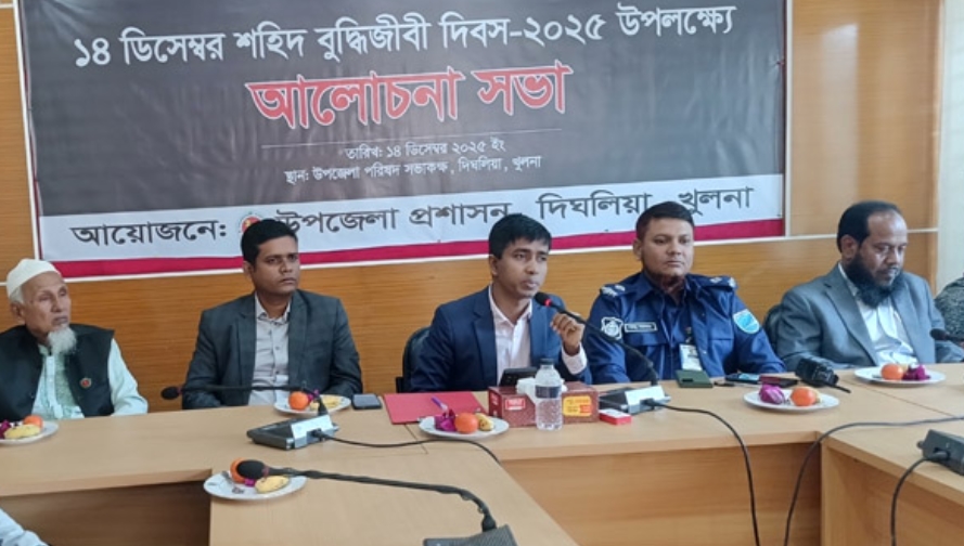 দিঘলিয়া উপজেলা প্রশাসনের আয়োজনে শহীদ বুদ্ধিজীবী দিবস উদযাপন উপলক্ষে আজ রোববার (১৪ ডিসেম্বর) সকাল ১১টায় উপজেলা কনফারেন্স রুমে আলোচনা সভা অনুষ্ঠিত হয়। খুলনার দিঘলিয়া উপজেলা নির্বাহী অফিসার মোঃ হারুন অর রশিদ এর সভাপতিত্বে উপস্থিত ছিলেন,উপজেলা স্বাস্থ্য ও প প কর্মকর্তা মাহবুবল আলম, দিঘলিয়া থানার অফিসার ইনচার্জ শাহ্ আলম, মুক্তিযোদ্ধা কমান্ডার গোলাম মোস্তফা।