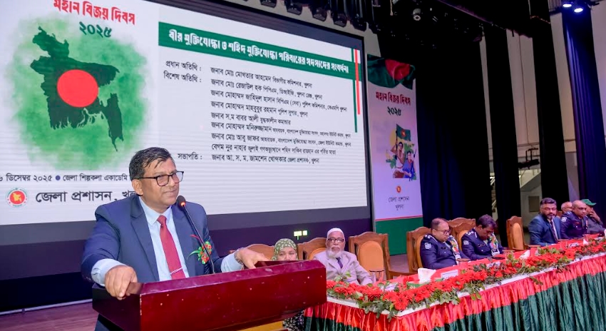 বিজয় দিবস উপলক্ষ্যে খুলনা আঞ্চলিক তথ্য অফিসের আয়োজনে আলোচনা সভা এবং নগরীর শহিদ হাদিস পার্কে দিনব্যাপী মহান মুক্তিযুদ্ধ ও জুলাই গণঅভ্যুত্থানের আলোকচিত্র প্রদর্শনী অনুষ্ঠিত হয়। বেলা সাড়ে ১১টায় খুলনা জেলা শিল্পকলা একাডেমি অডিটোরিয়ামে বীর মুক্তিযোদ্ধা ও শহিদ পরিবার, যুদ্ধাহত মুক্তিযোদ্ধা পরিবারের সম্মানে সংবর্ধনা দেয়া হয়। সংবর্ধনা অনুষ্ঠানে প্রধান অতিথি বিভাগীয় কমিশনার মোঃ মোখতার আহমেদ বলেন, মুক্তিযোদ্ধারা জাতির সূর্য সন্তান। তাদের অবদান জাতি চিরদিন শ্রদ্ধাভরে স্মরণ করবে। তাদের অবদান ভোলার নয়।