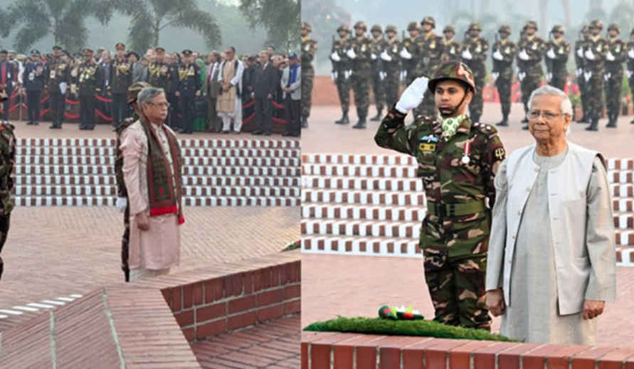 ডেস্ক রিপোর্ট : মহান বিজয় দিবসে জাতীয় স্মৃতিসৌধে বীর শহীদদের প্রতি শ্রদ্ধা জানিয়েছেন রাষ্ট্রপতি মো. সাহাবুদ্দিন ও প্রধান উপদেষ্টা ড. মুহাম্মদ ইউনূস।