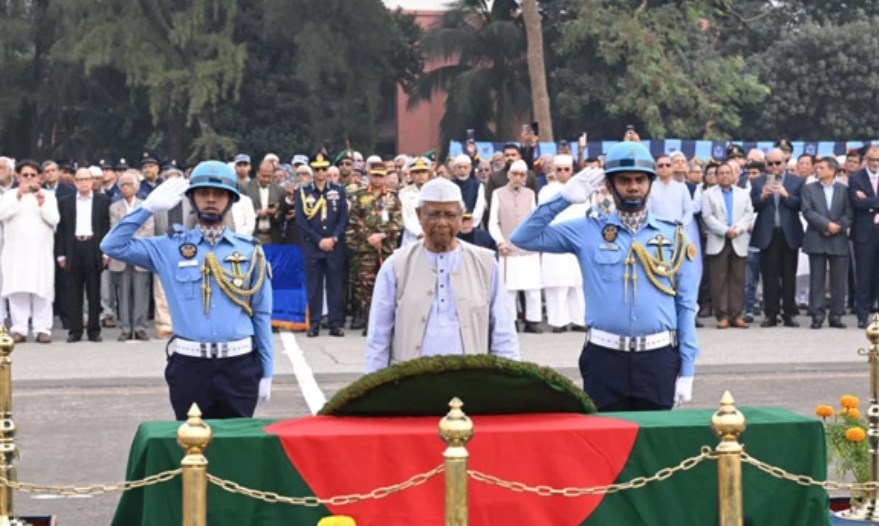 নামাজের জানাজার পরে মরদেহে পুষ্পস্তবক অর্পণ করে শ্রদ্ধা নিবেদন করা হয়। সবশেষে মরহুমের সম্মানে ফ্লাইপাস্ট (সম্মানজনক ফ্লাইট) অনুষ্ঠিত হয়।