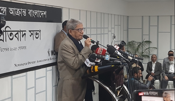 মির্জা ফখরুল বলেন, আজ ডেইলি স্টার বা প্রথম আলো নয়, আজ গণতন্ত্রের ওপর আঘাত এসেছে। আমার স্বাধীনভাবে চিন্তা করার যে অধিকার, আমার কথা বলার যে অধিকার, তার ওপরে আবার আঘাত এসেছে। জুলাই যুদ্ধের ওপরে আঘাত এসেছে। জুলাই যুদ্ধ ছিল এ দেশের মানুষের অধিকার প্রতিষ্ঠার যুদ্ধ। আজ সেই জায়গায় আঘাত এসেছে।