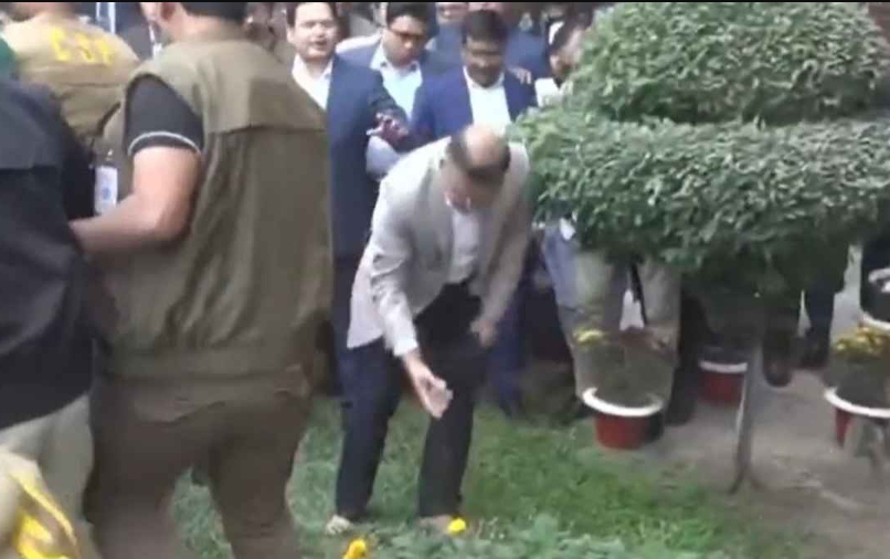 বৃহস্পতিবার (২৫ ডিসেম্বর) দুপুর সাড়ে ১২টার পর বিমানবন্দর থেকে বের হয়ে প্রথমে দুই পায়ের জুতা খোলেন। এরপর হাতে নেন এক মুঠো মাটি।