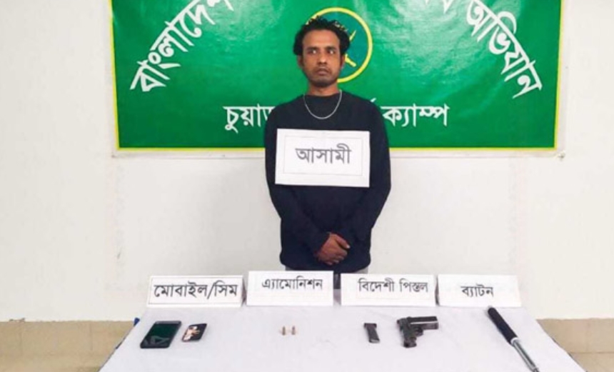 ডেস্ক রিপোর্ট : চুয়াডাঙ্গার জীবননগর পৌর এলাকায় অভিযান চালিয়ে একটি বিদেশি পিস্তল ও গুলিসহ এক সাইকেল শোরুমের মালিক গাজী জাহিদ হাসানকে (৩৬) আটক করেছে যৌথবাহিনী।