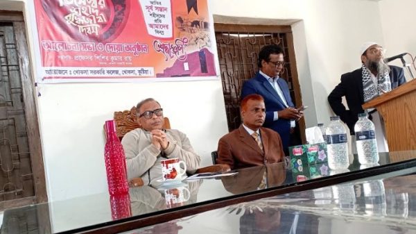 ডেস্ক রিপোর্ট : শহীদ বুদ্ধিজীবী দিবসের আলোচনা সভায় সভাপতির বক্তব্যে খুলনার দিঘলিয়া উপজেলা নির্বাহী অফিসার মোঃ হারুন অর রশিদ বলেন, ১৯৭১ সাল আমাদের স্মরনীয় বছর। আমাদের পাওয়ার আনন্দ যেমন রয়েছে ...বিস্তারিত পড়ুন
