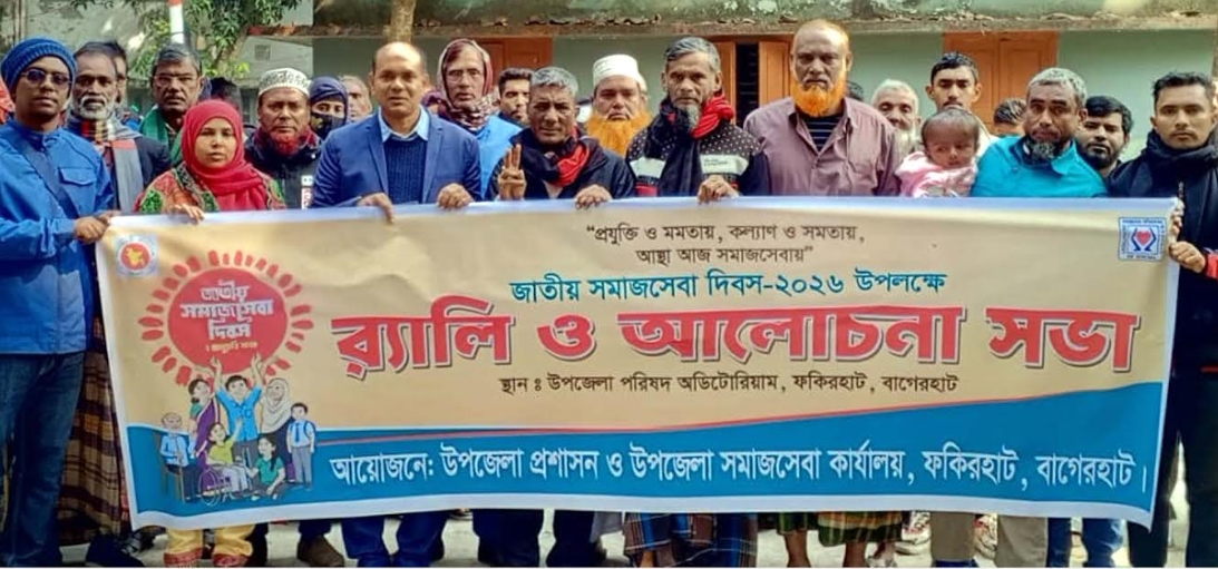 ফকিরহাট প্রতিনিধি : বাগেরহাটের ফকিরহাটে জাতীয় সমাজসেবা দিবস-২০২৬ পালিত হয়েছে। এ উপলক্ষ্যে র্যালি ও আলোচনা সভা অনুষ্ঠিত হয়েছে।