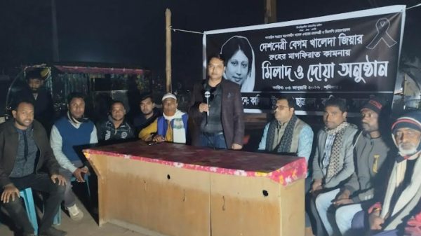 সাতক্ষীরা প্রতিনিধিঃ বাংলাদেশ জাতীয়তাবাদী ছাত্রদল কালিগঞ্জ উপজেলা শাখার উদ্যোগে সাতক্ষীরার কালিগঞ্জ দক্ষিণ পাড় ফুলতলা ধানের শীষের নির্বাচনী অফিসে বিএনপি চেয়ারপার্সন, সাবেক প্রধানমন্ত্রী, দেশনেত্রী বেগম খালেদা জিয়ার রুহের মাগফেরাত কামনায় মিলাদ