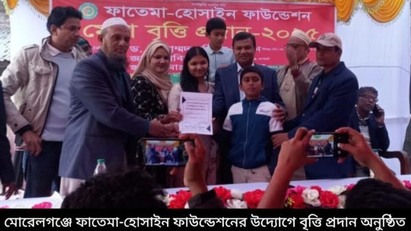 শেফালী আক্তার রাখি, মোরেলগঞ্জ : বাগেরহাটের মোরেলগঞ্জে ফাতেমা হোসাইন ফাউন্ডেশনের উদ্যেগে মেধাবী শিক্ষার্থীদের মাঝে ২০২৫ মেধা বৃত্তি প্রদান অনুষ্ঠিত হয়েছে। শনিবার বিকাল ৩ টায় হোগলাপাশা ইউনিয়নের সম্মীলনী মাধ্যমিক শিক্ষা নিকেতন বিদ্যালয়