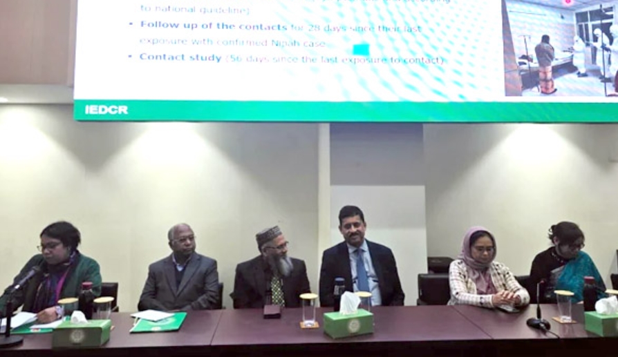 বুধবার রোগতত্ত্ব, রোগনিয়ন্ত্রণ ও গবেষণা প্রতিষ্ঠানের (আইইডিসিআর) মিলনায়তনে অনুষ্ঠিত ‘নিপাহ ভাইরাসের বিস্তার ও ঝুঁকি বিষয়ে মতবিনিময়’ শীর্ষক এক সভায় এ তথ্য জানানো হয়। সভায় সভাপতিত্ব করেন আইইডিসিআরের পরিচালক তাহমিনা শিরীন।