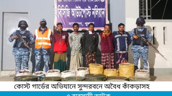 মোংলা প্রতিনিধি : বাংলাদেশ কোস্ট গার্ডের পশ্চিম জোনের একটি বিশেষ অভিযানে শনিবার (১০ জানুয়ারি) সুন্দরবনের কালাবগি সংলগ্ন এলাকা থেকে প্রায় ৫ লক্ষ ৩৯ হাজার টাকা মূল্যের ৪৯০ কেজি অবৈধ কাঁকড়া ...বিস্তারিত পড়ুন