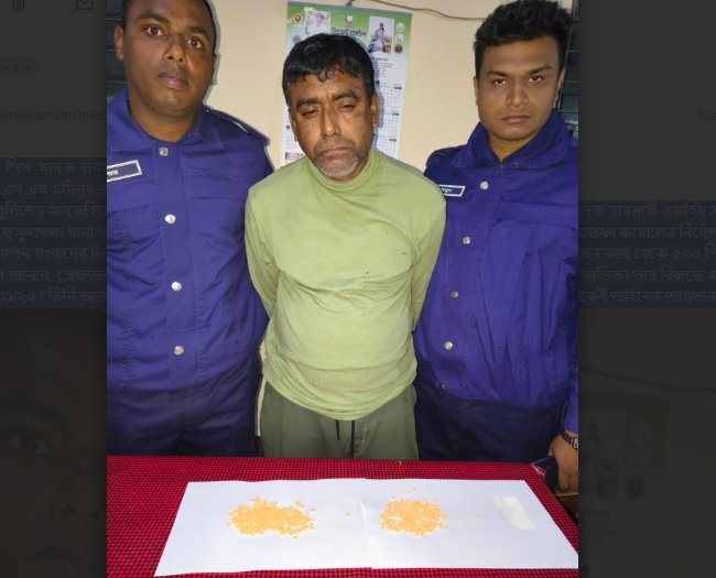 ফুলতলায় ৫০০ পিস মাদক ব্যবসায়ী গ্রেফতার