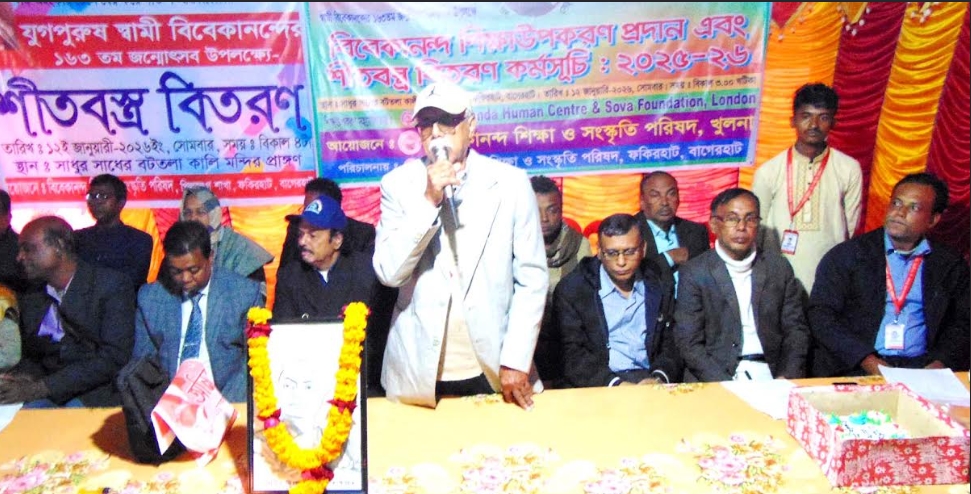 ফকিরহাট প্রতিনিধি : বাগেরহাটের ফকিরহাট উপজেলার পিলজংগ ইউনিয়নের সাধুর সাধের বটতলা শ্রী শ্রী কালি মন্দির চত্ত্বরে স্বামী বিবেকানন্দের ১৬৩তম জন্ম উৎসব পালন উপলক্ষে শিক্ষার্থীদের মাঝে শিক্ষা উপকরণ ও শীতবস্ত্র বিতরণ করা হয়েছে।
