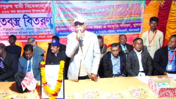 ফকিরহাট প্রতিনিধি : বাগেরহাটের ফকিরহাট উপজেলার পিলজংগ ইউনিয়নের সাধুর সাধের বটতলা শ্রী শ্রী কালি মন্দির চত্ত্বরে স্বামী বিবেকানন্দের ১৬৩তম জন্ম উৎসব পালন উপলক্ষে শিক্ষার্থীদের মাঝে শিক্ষা উপকরণ ও শীতবস্ত্র বিতরণ ...বিস্তারিত পড়ুন