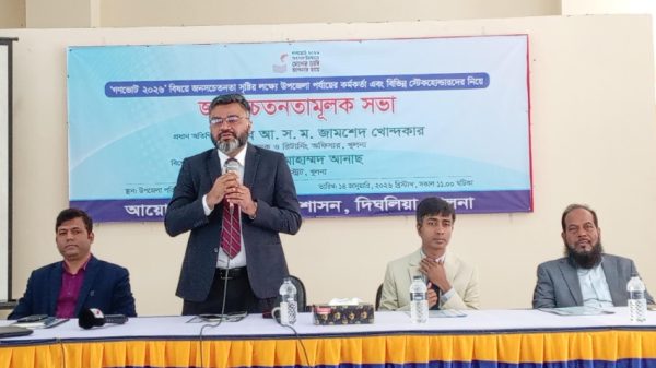 এস.এম.শামীম, দিঘলিয়া : আসন্ন গণভোট ২০২৬ বিষয়ে জনসচেতনতা বৃদ্ধি এবং ভোটারদের মাঝে সঠিক ধারণা পৌঁছে দেওয়ার লক্ষ্যে খুলনার দিঘলিয়া উপজেলায় একটি জনসচেতনতামূলক সভা অনুষ্ঠিত হয়েছে। উপজেলা পর্যায়ের বিভিন্ন কর্মকর্তা, জনপ্রতিনিধি, বিভিন্ন ...বিস্তারিত পড়ুন