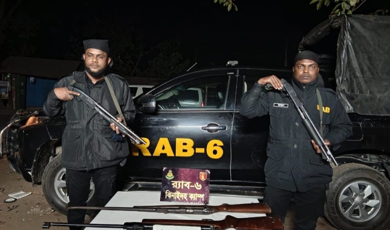 এরই ধারাবাহিকতায় গোপন সংবাদের ভিত্তিতে অভিযান চালিয়ে পরিত্যক্ত অবস্থায় ২২ ক্যালিবারের একটি একনলা বন্দুক ও একটি এয়ারগান উদ্ধার করা হয়।’