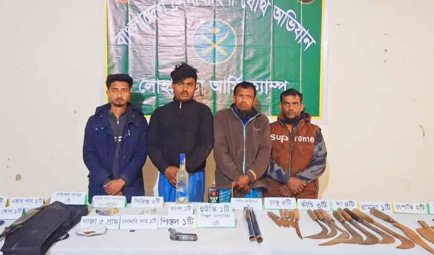 গ্রেফতাররা হলেন—উপজেলার দিঘলিয়া গ্রামের মো. কামরুজ্জামান মণ্ডলের ছেলে তোফায়েল মণ্ডল (২৫), লাহুড়িয়া ডহরপাড়া গ্রামের তবিবুর বিশ্বাসের ছেলে মো. রাসেল বিশ্বাস (১৯), সাতক্ষীরা শ্যামনগরের বইশখালি গ্রামের মৃত নূর ইসলাম গাজীর ছেলে ইসমাইল হোসেন ওরফ পিন্টু (৫০) এবং একই গ্রামের মৃত তোফাজ্জল গাজীর ছেলে আমিনুর গাজী (৪৫)।