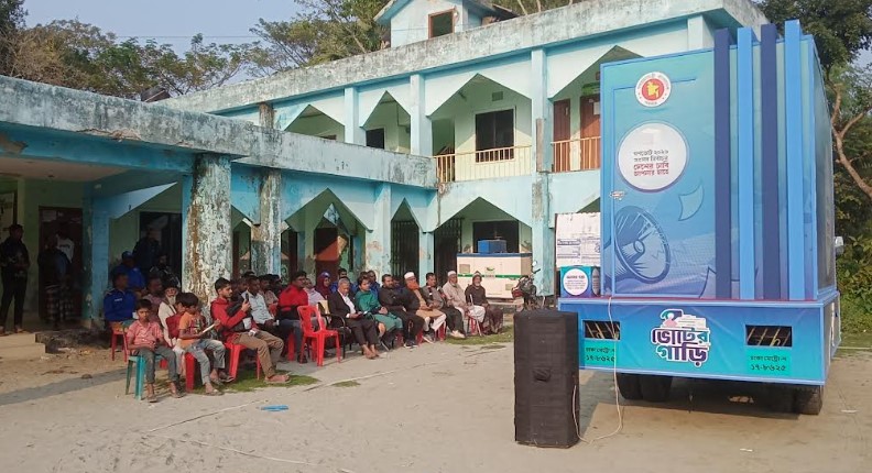 মোল্লাহাট (বাগেরহাট) প্রতিনিধিঃ আসন্ন সংসদ নির্বাচন ২০২৬ ও গণভোট উপলক্ষে বাগেরহাট-১ আসনের মোল্লাহাট উপজেলার গাওলা ইউনিয়ন পরিষদ চত্বরে সরকারের পক্ষ থেকে ভোটের গাড়ির মাধ্যমে প্রচারণা চালানো হয়েছে। শুক্রবার বিকাল ৪টায় ওই ভোটের গাড়ির বড় পর্দায় ভোটের গুরুত্ব ও গণভোট সম্পর্কিত গুরুত্বপূর্ণ ভিডিও প্রদর্শন করা হয়।