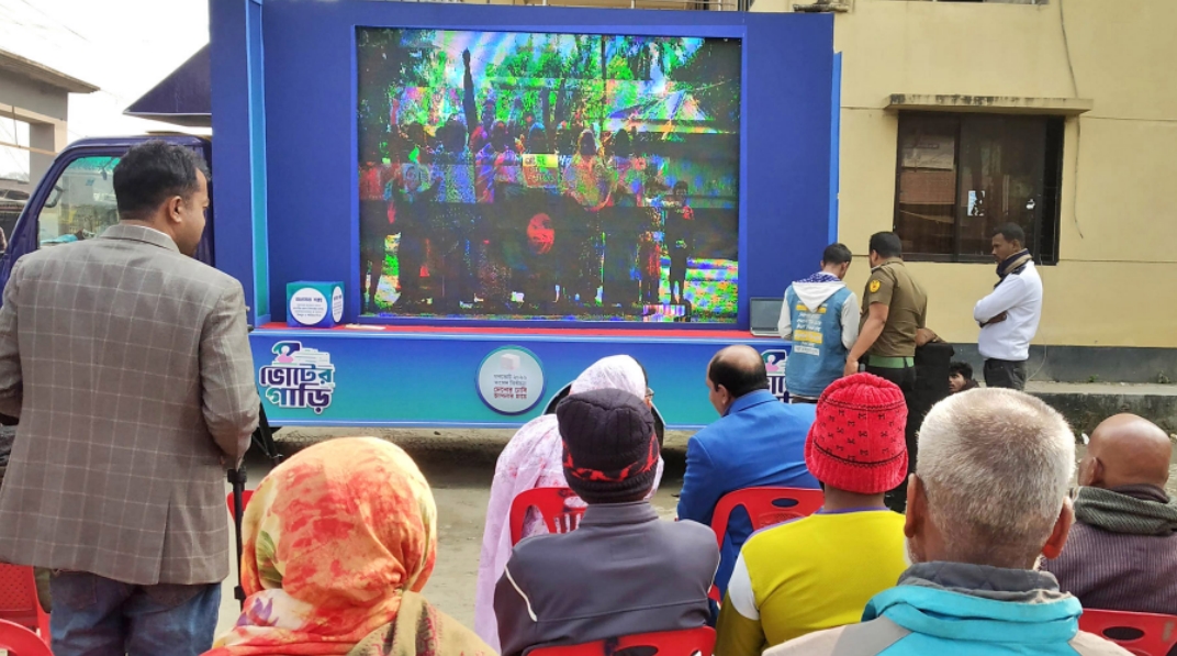 ফকিরহাট প্রতিনিধি : ‘গণভোট ও সংসদ নির্বাচন, দেশের চাবি আপনার হাতে’ এ স্লোগান নিয়ে ভোটের গাড়ি এখন বাগেরহাটের ফকিরহাট উপজেলায় রয়েছে। শনিবার (১৭ জানুয়ারি) সকালে নির্বাচন বিষয়ক প্রচার প্রচারণার জন্য গাড়িটি জেলার উপজেলার নলধা-মৌভোগ ইউনিয়ন পরিষদ মাঠে পৌঁছায়। ভ্রাম্যমাণ এ ভোটের গাড়িতে জুলাই গণ অভ্যুত্থান, জুলাই যোদ্ধা, বুয়েট শিক্ষার্থী আবরার ফাহাদ হত্যা এবং ফেলানী হত্যা নিয়ে নির্মিত প্রামাণ্যচিত্র প্রদর্শন করা হচ্ছে। সংস্কৃতি ও তথ্য মন্ত্রণালয়ের উদ্যোগে তৈরি করা পাঁচটি পিভিসির মাধ্যমে তুলে ধরা হচ্ছে অতীতের গণতন্ত্রহীনতা, সীমান্ত হত্যা, তরুণ ও নারীদের বঞ্চিত হওয়ার ইতিহাস। এর মাধ্যমে সাধারণ মানুষকে গণভোট ও সংসদ নির্বাচন বিষয়ে সচেতন করা হচ্ছে। এতে গণভোট, সংসদ নির্বাচন ও ভোট প্রদানের গুরুত্ব তুলে ধরা হচ্ছে। এ গাড়িটি কোন প্রার্থীর বিষয়ে প্রচার করছে না। ফকিরহাটে ভোটের গাড়ির এ প্রচারণা দিনভর সদর ইউনিয়নের ডাকবাংলো মোড়, ফলতিতা বাজার সহ বিভিন্ন স্থানে গণভোট ও সংসদ নির্বাচন বিষয়ে প্রচার চালায়। এসময় ফকিরহাট উপজেলা নির্বাহী কর্মকর্তা (ইউএনও) সুমনা আইরিন ও উপজেলা সহকারী কমিশনার (ভূমি) মো. শরীফ নেওয়াজ সহ দর্শনার্থীরা উপস্থিত ছিলেন।