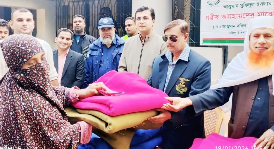 বিজ্ঞপ্তি : আঞ্জুমান মুফিদুল ইসলাম ঢাকা অফিস কর্তৃক পরিচালিত খুলনার রূপসার ইলাইপুর গ্রামের দলিল উদ্দিন আঞ্জুমান দলিল হারুন স্বাস্থ্য সেবা ও প্রশিক্ষণ কেন্দ্রে অসহায় দুস্থ বয়স্ক শীতার্তদের মাঝে কম্বল বিতরণ করা অনুষ্ঠিত হয়েছে। রবিবার (১৮ জানুয়ারি) বিকেল ৩ টায় এ কম্বল বিতরণ করা হয়। অনুষ্ঠানে প্রধান অতিথি থেকে কম্বল বিতরণ করেন, আঞ্জুমান দলিল হারুন স্বাস্থ্য সেবা ও প্রশিক্ষণ কেন্দ্রে'র চেয়ারম্যান ও সাবেক যুগ্ম সচিব এস এম হারুনার রশিদ। আঞ্জুমান দলিল হারুন স্বাস্থ্য সেবা ও প্রশিক্ষণ কেন্দ্রের সদস্য সচিব আরিফুল ইসলাম রিপনের পরিচালনায় বিশেষ অতিথি ছিলেন রূপসা উপজেলা প্রকৌশলী শোভন সরকার, উপজেলা উপ-সহকারী প্রকৌশলী মো. আল আমিন শেখ, রূপসা বাসস্ট্যান্ড পুলিশ ফাঁড়ির টুআইসি মনিরুল ইসলাম,