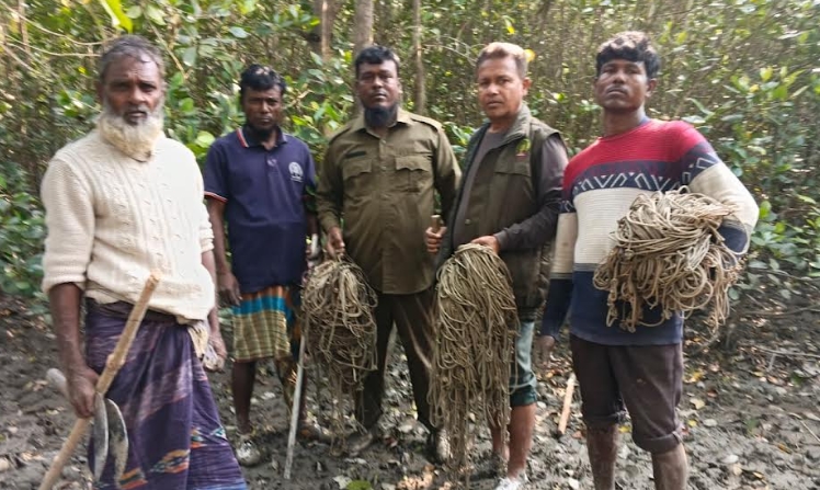 শ্যামনগর প্রতিনিধি : পশ্চিম সুন্দরবনের সাতক্ষীরা রেঞ্জ থেকে হরিণ শিকারের কাজে ব্যবহৃত দুই শতাধিক মালা ফাঁদ উদ্ধার করেছে বনবিভাগের সদস্যরা। রোববার সকাল থেকে দুপুর পর্যন্ত সাতক্ষীরা রেঞ্জের কলাগাছিয়া টহলফাঁড়ির ফুলখালী এলাকা থেকে ফাঁদগুলো উদ্ধার করা হয়। কলাগাছি টহলফাঁড়ির ফরেষ্টার তাইবুর রহমান, শাহিনুর রহমানসহ স্থানীয় সিপিজির সদস্যরা ফাঁদ উদ্ধারের ঐ অভিযানে অংশ নেয়। বিষয়টি নিশ্চিত করে সাতক্ষীরা রেঞ্জের ফরেষ্ট রেঞ্জার মোঃ ফজলুল হক জানান বন্যপ্রাণী রক্ষায় ‘ফুট পেট্রোলিং’এর বিকল্প নেই। এই ব্যবস্থার মাধ্যমে সংরক্ষিত বনাঞ্চলের নিরীহ প্রাণীগুলোকে বাঁচানো সম্ভব। তিনি আরও বলেন, দুস্কৃতিকারীরা নানা কৌশের সুন্দরবনের মধ্যে ঢুকে সুবিধামত স্থানে ফাঁদ পেতে রাখছে। তাতে হরিণসহ গুরুত্বপুর্ন নানা প্রজাতির প্রাণী আটকা পড়ে মারা পড়ছে। যে কারনে সাম্প্রতিক সময়ে সুন্দরবনের অভ্যন্তরে ‘ফুট পেট্রোলিং’ এর ব্যবস্থা করা হয়েছে। এই প্রক্রিয়ায় নিরীহ প্রাণীগুলোকে রক্ষা করা সহজ হবে। প্রতিটি স্টেশন ও টহলফাঁড়ির আওতাধীন এলাকায় নিয়মিত ‘ফুট পেট্রোলিং’ ব্যবস্থা চালু করার কথাও জানান তিনি।