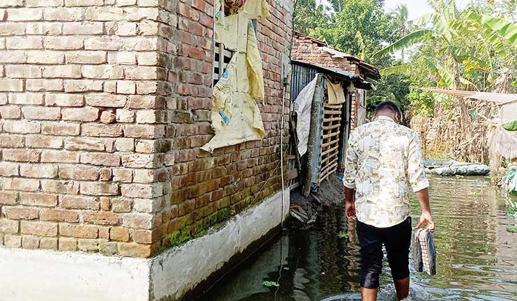 সাতক্ষীরা প্রতিনিধি : একটু বৃষ্টি হলেই সাতক্ষীরা শহরসহ আশপাশের অসংখ্য গ্রাম ডুবে যায়। রাস্তার উপরেই থাকে কোমর সমান পানি আর উঠানে বুক সমান। বারান্দা, ঘর, রান্নাঘরে মাছ খেলা করে। টয়লেটগুলো থাকে পানির নিচে। শিক্ষা প্রতিষ্ঠানের মধ্যে পানি। পশুপাখির মরা দেহ, টয়লেটের বর্জ্য ভেসে বেড়ায় এক উঠান থেকে অন্য উঠানে। এভাবে চলে বছরের ছয় মাস। ফলে, মারা যাচ্ছে এলাকার অধিকাংশ গাছপালা। মানুষজন এলাকা ছেড়ে অন্যত্র চলে যায় বর্ষার দিনগুলোতে। আবার কেউ স্থায়ীভাবে অন্য এলাকায় ঘর তুলছে।