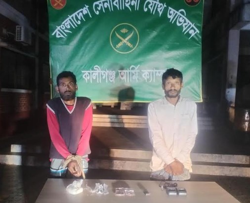 মঙ্গলবার ভোর রাতে সাতক্ষীরা কালিগঞ্জের কৃষ্ণনগর এলাকায় অভিযান চালিয়ে তাদেরকে গ্রেফতার করা হয়। গ্রেফতারকৃতরা হলেন, কৃষ্ণনগর গ্রামের মৃত মনসুর আলীর পুত্র মাহাবুবুর মোড়ল, একই এলাকার মৃত আলী বকস গাজীর পুত্র শহিদুল গাজী।